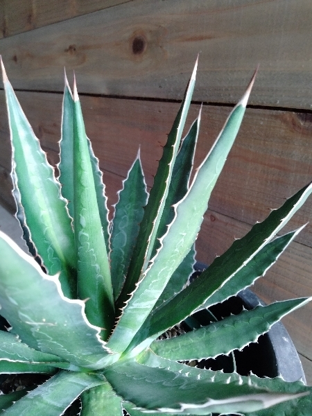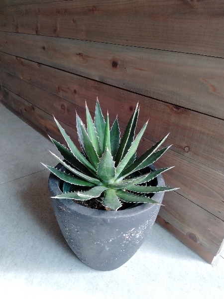 メキシコ原産の植物で、厚くて鋭い葉を持つのが特徴です。繁殖は主に根からの子株によって行われ、成長は比較的ゆっくりです。乾燥に強く、耐暑性も高いため、初心者にも育てやすい植物です。