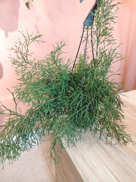 原産地はブラジルで、細長い茎が特徴的な観葉植物です。茎は節間が短く、サボテンのような外見を持ちながらも、葉がないことが特徴です。花は小さく、黄色で春に咲きます。室内でも育てやすく、特に日陰でも元気に育ちます。