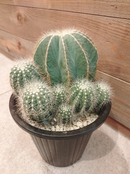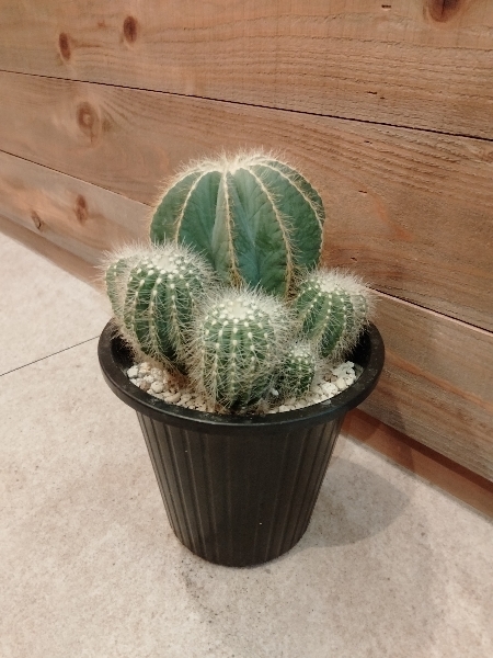 メキシコ原産のこのサボテンは、球形の形状が特徴的で、比較的コンパクトなサイズに成長します。表面には美しいリブと小さな棘があり、全体にわたって均一な形を保ちます。また、暑さに非常に強く、直射日光の下でも元気に育ちます。春から夏にかけては黄色い花を咲かせ、観賞価値が高いです。