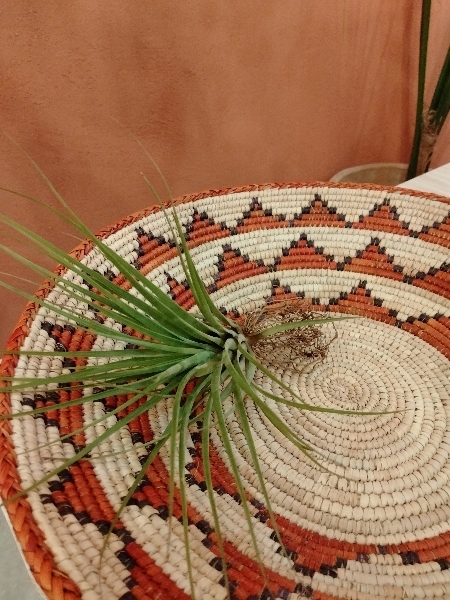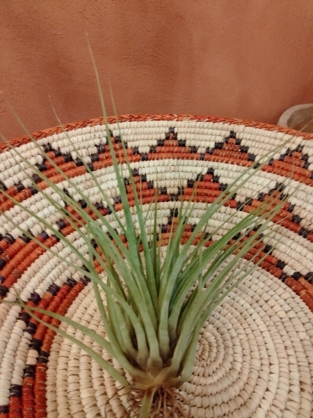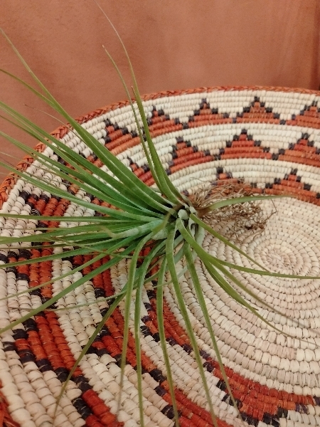 中南米原産のエアプランツで、暑さに強く育てやすい点が魅力です。葉は細長く、空気中の湿気を吸収して生きるため、土を必要としません。