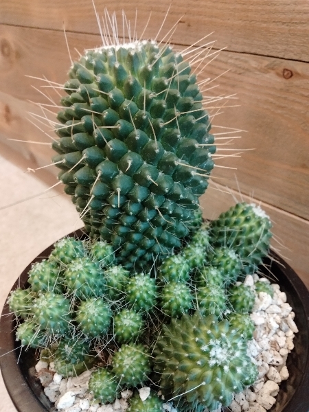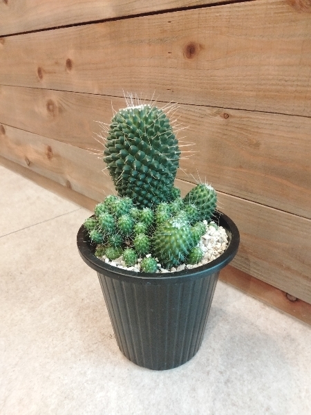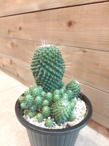 メキシコ原産のサボテンで、直立した円柱状の形が特徴です。全体に細かい刺が密生しており、春から夏にかけてピンク色の美しい花を咲かせます。暑さに強く、日光を好むため、日当たりの良い場所での栽培が最適です。また、乾燥にも強く、水やりの頻度を少なくすることで元気に育ちます。初心者にも育てやすい植物です。