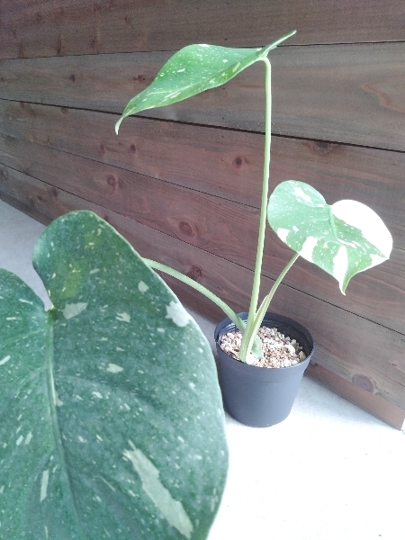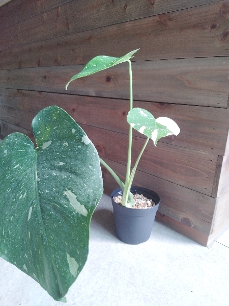 葉に美しい斑入り模様があり、観葉植物として人気があります。耐陰性があり、比較的育てやすい植物です。大きな葉は空気を清浄する効果があるとされ、インテリアグリーンとしても人気です。生長が遅めで、特に湿度を好むため、乾燥には注意が必要です。成長するにつれてつるが伸びていきます。