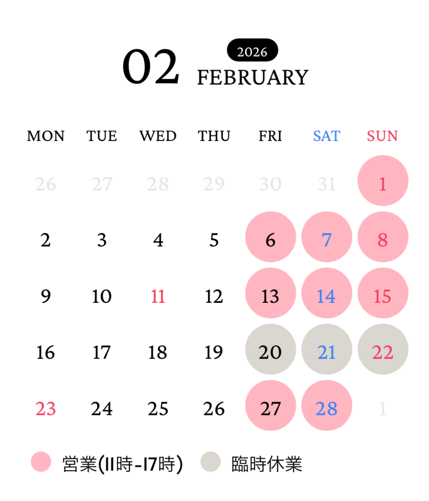 2月20日(金)・21日(土)・22日(日) はお休みをいただきます。